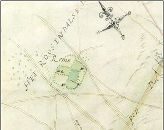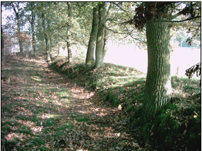 Om met paard en wagen de draai naar het landhuis te kunnen maken moest er van de houtwal tegenover het landhuis een stuk worden afgehaald. Deze beschadiging is nog steeds goed te zien (fig.145).