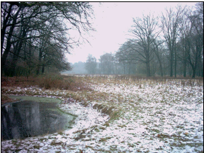 Fig. 156 Achter de rentmeesterswoning ligt, verscholen in het bos, deze betonnen bak die voor de oorlog een eendenvijver was (waar de kinderen ook wel gingen pootjebaden). In de oorlog maakten de Duitsers de betonnen rand waarna zij hem gebruikten als zwembad.