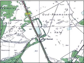 Fig. 157 De plaats waar boerderij Dresden heeft gestaan. Men heeft er nu een waterreservoir met pompgebouwtje aangelegd. Achteraan is nog een stuk weiland te zien wat bij de boerderij behoorde.
