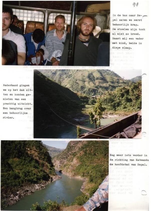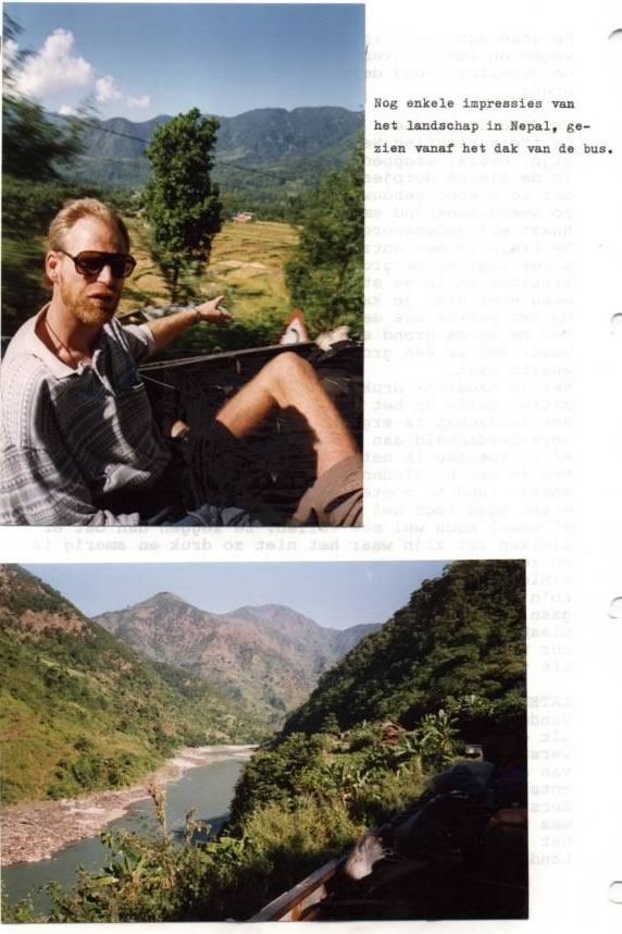 s’ Middags in Gorakhpur aangekomen en daar bleken nog zo’n 15 rugzaktoeristen richting Nepal te willen gaan. Met z’n allen de bus genomen naar het grensplaatsje en daar overnacht om de volgende dag om 8.30 uur richting Kathmandu (de hoofdstad) te rijden, een rit van zo’n 10 uur door de Himalaya.