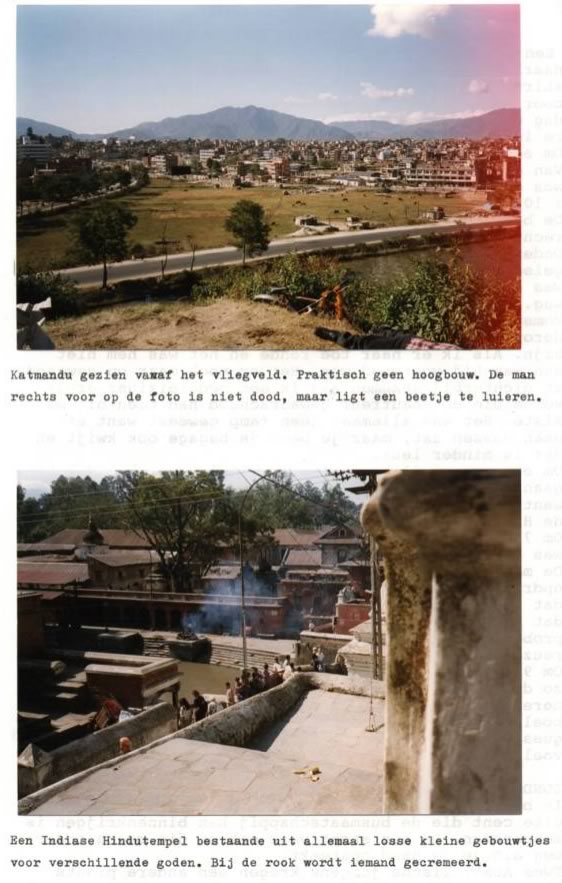 Dat is wel jammer want ik wilde graag de Himalaya’s zien. Het stikt hier in Kathmandu van de toeristen, ook veel Hollanders zijn hier. Na een maand geen Nederlands meer gesproken te hebben had ik wel weer eens zin in een gesprek over hoe de situatie in Holland nu is. Maar zo makkelijk als je contact maakt met de inboorlingen hier, zo moeilijk is het om contact te krijgen met de toeristen. Ze kijken je in de straten straal voorbij en als je hallo zegt kan er met moeite een knikje vanaf. Ja, het is niet verwonderlijk als je voor veel geld een vliegticket hebt gekocht en dan hier nog allemaal toeristen tegenkomt.