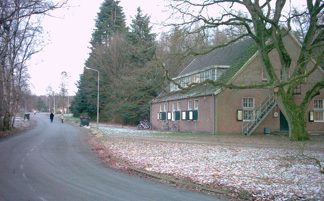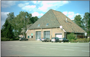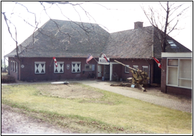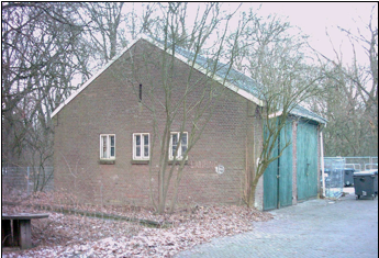 Fig. 58 Dit als boerderij vermomde gebouw werd door de brandweer van het vliegveld gebruikt. De grote deuren zijn er later in gemaakt. Tegenwoordig is het een kledingmagazijn voor de asielzoekers met op de eerste verdieping een bibliotheek.