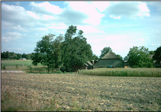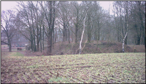 Fig. 59 Zicht op de boerderij Kamphoeve vanuit noordelijke richting. Het reliëf in het landschap is duidelijk te zien. Links ligt Deelen, een stuk hoger dan de boerderij.