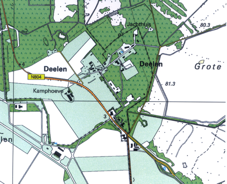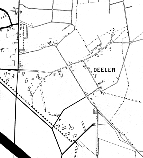 De nederzetting Deelen lag vroeger zeer geïsoleerd midden in een uitgestrekte heidevlakte. Het was verdeeld in een Groot- en een Klein Deelen waarbij Groot Deelen ongeveer 6 meter hoger lag als Klein Deelen (fig.52). Er woonden een aantal families die zich met landbouw bezighielden.