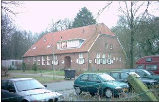 Fig. 70 Het voormalige Duitse Lazarett dat nu ook weer dienst doet als ziekenboeg maar nu voor de asielzoekers. Onder de ramen aan de voorzijde kan men nog de Duitse tekst lezen.